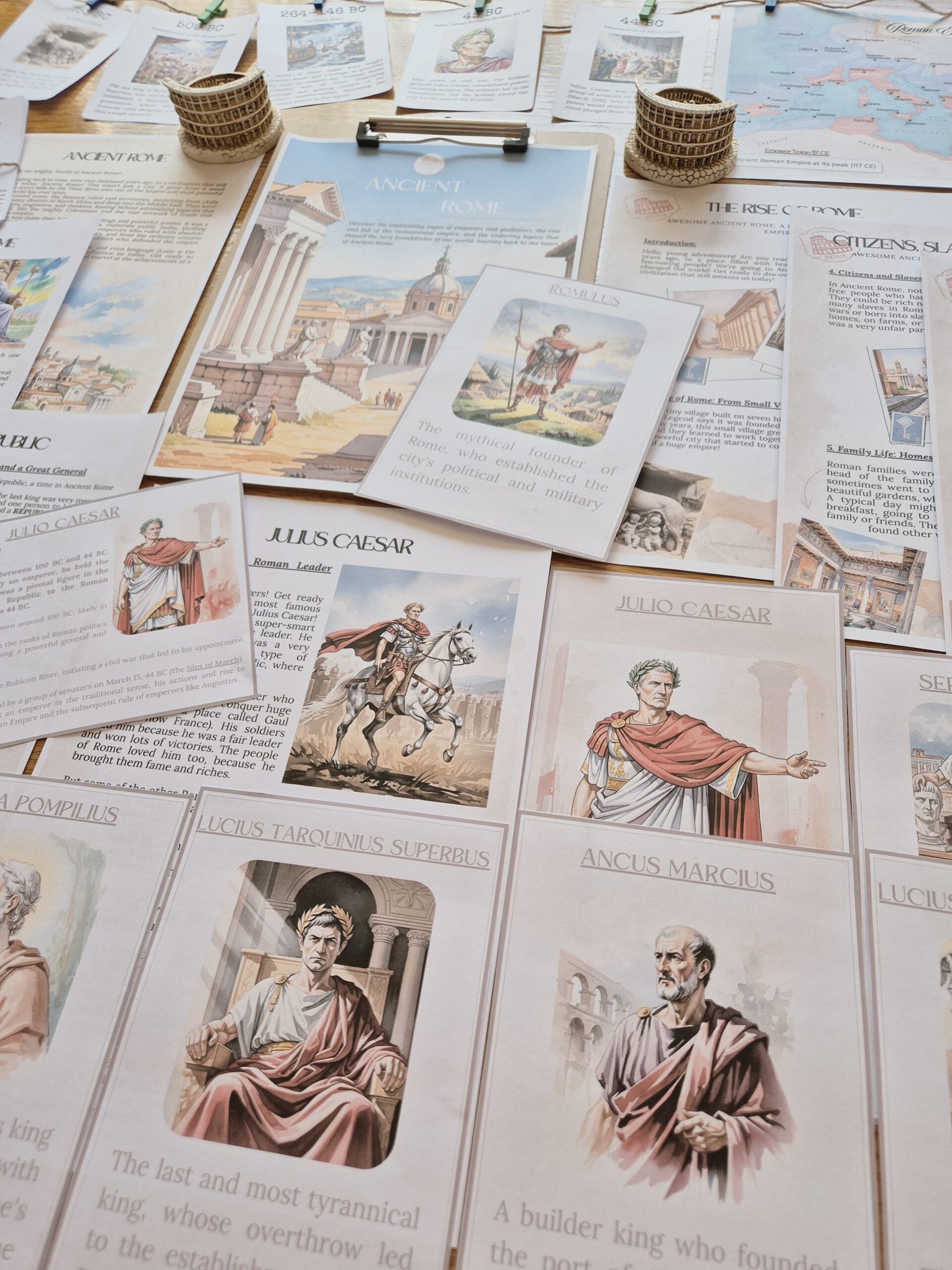Embark on an epic journey back in time with our “Ancient Rome” – First Young Adventurer Study Pack! This 130-page unit is for kids aged 6 to 12 and will transport them into a fascinating civilization that still captivates us today.