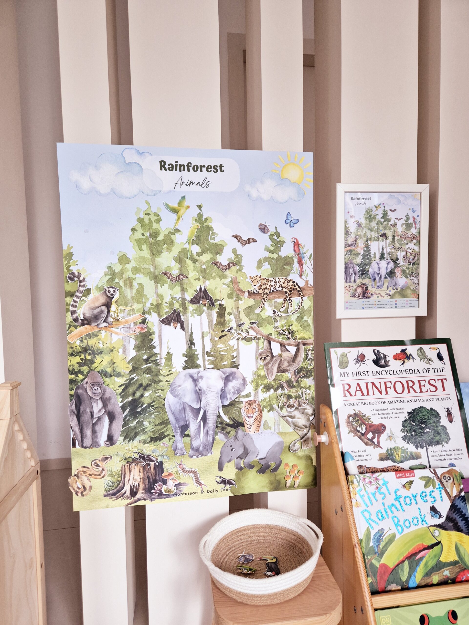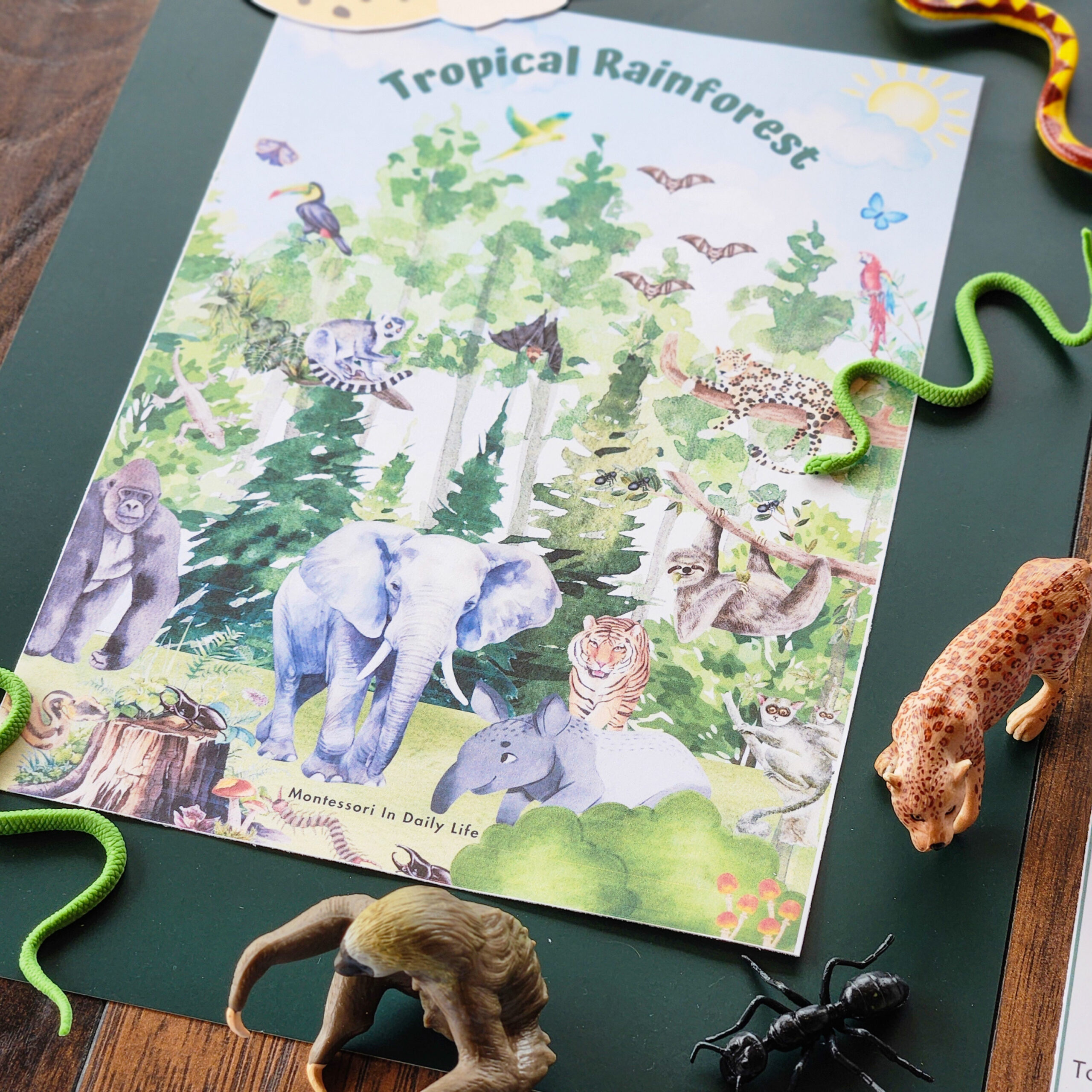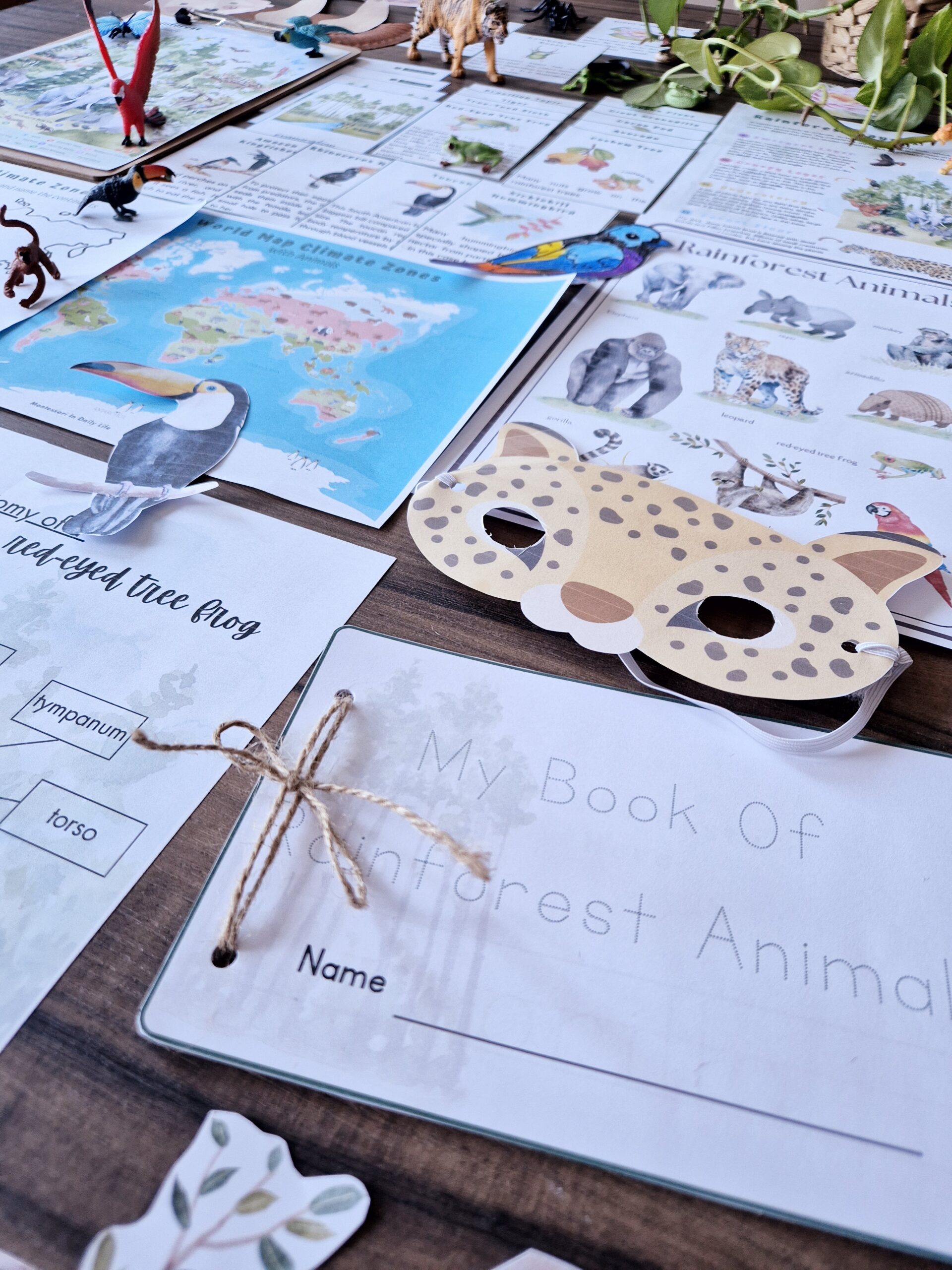 Find out about layers of the rainforest, take a walk through some truly special forest habitats and meet the animals that call it home. The unit is packed with amazing information, infographics, anatomy posters, world map climate zones, experiments, facts, games, fun crafts, math and language work, which includes to make your own Montessori book. Plus it comes with a wall-sized poster which provides a fun guide to the layers of the forest, type of animals living on each layer, their names, and a Montessori inspired removable stickers landscape poster.